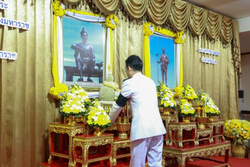 💞🎯>>โดยประธานในพิธี ได้ถวายพานพุ่มดอกไม้สดเบื้องหน้าพระบรมรูปพ่อขุนรามคำแหงมหาราช และ เบื้องหน้าพระบรมฉายาลักษณ์ สมเด็จพระนเรศวรมหาราช และอ่านคำถวายอาศิรวาทราชสดุดี เนื่องในวันพ่อขุนรามคำแหงมหาราช ประจำปี 2569 และวันยุทธหัตถีสมเด็จพระนเรศวรมหาราช 2569 เพื่อเป็นการน้อมรำลึกในพระมหากรุณาธิคุณของพระองค์ ที่ทรงมีต่อปวงชนชาวไทย